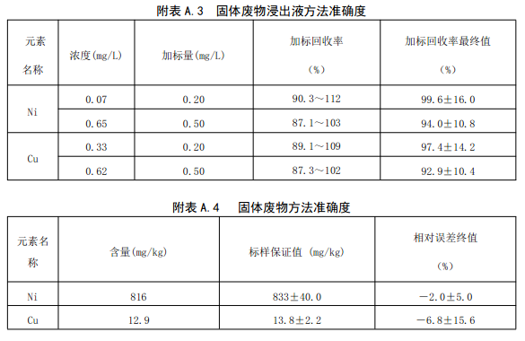注1:如固體廢物中鎳或銅的含量較高,試樣消解后定容體積可根據(jù)實際情況確定。
