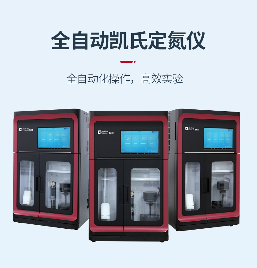 新一代N710全自動凱氏定氮儀集成了自動加堿加酸、自動加稀釋劑、蒸餾滴定、消化管排空、溶液液位監測、超溫監測、清洗排廢、結果計算等功能。采用符合國家標準的凱氏定氮方法:濃硫酸環境消解樣品、堿性環境蒸汽蒸餾、硼酸吸收、加指示劑滴定、終點顏色判定法。