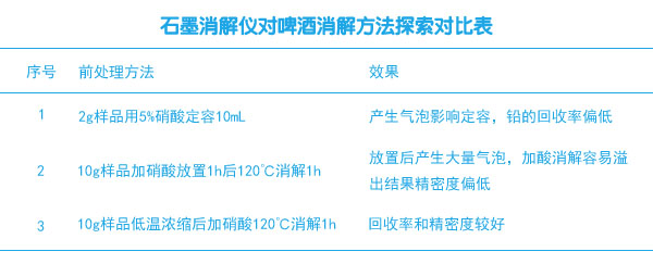 目前,國家衛(wèi)生標(biāo)準(zhǔn)規(guī)定啤酒中鉛的限量為0.5mg/L。國外對(duì)啤酒中鉛的分析報(bào)道較多,而國內(nèi)有關(guān)啤酒中鉛的測(cè)定的研究不多。下面文章中使用智能石墨消解儀對(duì)啤酒中鉛元素的分析進(jìn)行前處理消解,對(duì)啤酒的研究提供信息幫助。