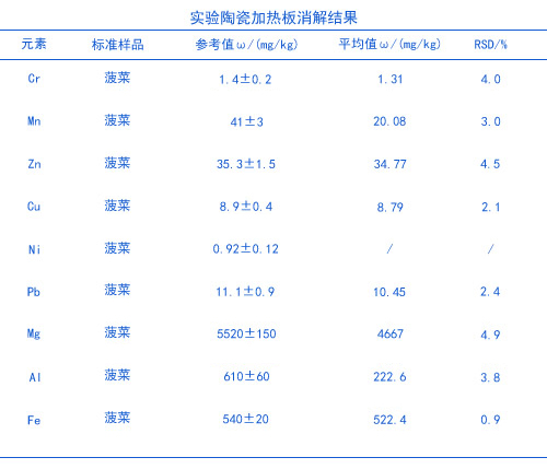 Cr,Mn,Zn,Cu,Ni,Pb,Mg,A1和Fe標準溶液(1000mg/L),菠菜GBW10015國家標準物質(zhì)。HNO3為BV級;H202 。