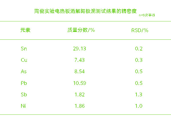 陶瓷實(shí)驗(yàn)電熱板9平行次消解陽(yáng)極泥精密度結(jié)果