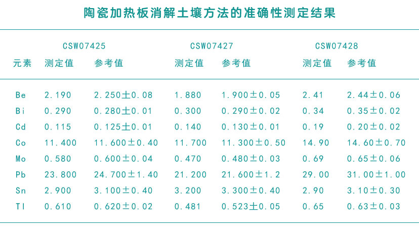 陶瓷加熱板消解土壤方法準確性測定結(jié)果