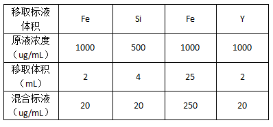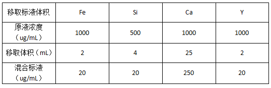 2.4Fe、Si、Ca、Y標(biāo)準(zhǔn)儲備液:1000ug/mL;